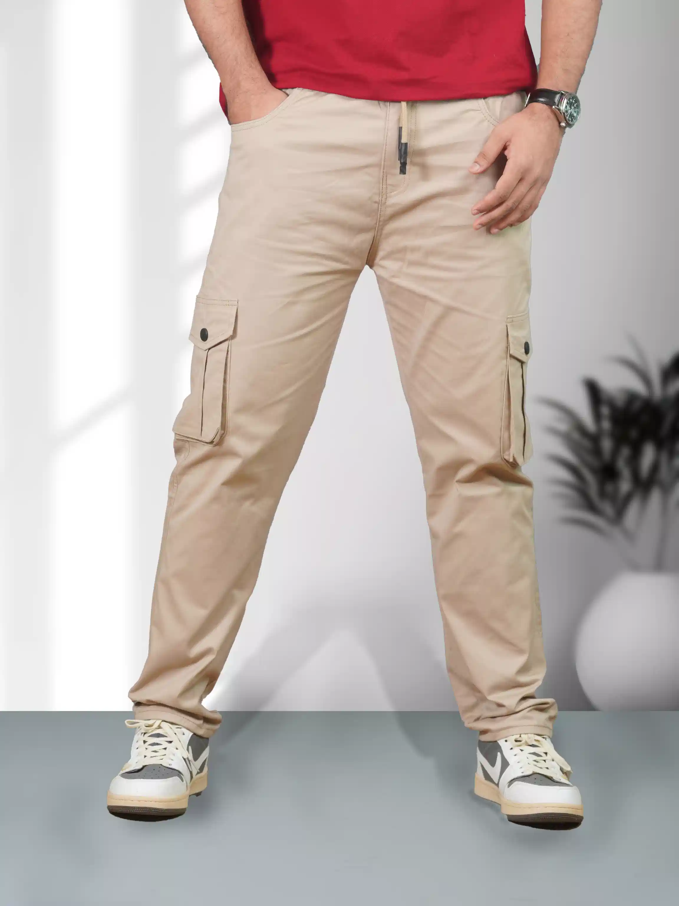 Ash Deep + Beige 6 Pocket Joggers Combo Pant - 98% Cotton